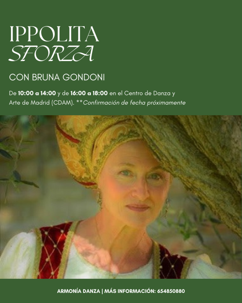 |IPPOLITA SFORZA|  La coreógrafa y bailarina Bruna Gondoni, nos ofrecerá una conferencia sobre «Ippolita Sorza y su influencia en la corte de Aragón«. La danza en la corte de Alfonso de Aragón ya aparece en el manuscrito de Cervera, y se sabe que la moresca y la danza de los momos de Játiva se bailaba mucho, mezclándose con un estilo de bailar más refinado que Gugliegmo Ebreo y Cornazzano llevaron a Nápoles siguiendo a Ippolita Sforza. El mismo Ferrante de Aragón, le pide a Guglielmo Ebreo enseñar danza  a sus hijas Leonor y Beatriz de Aragón.